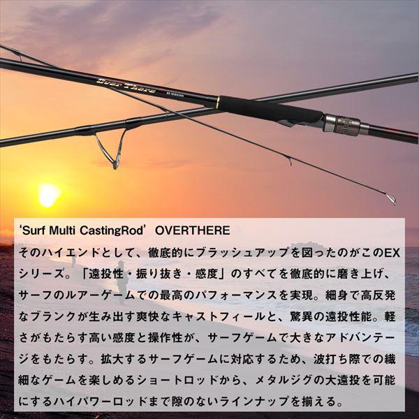 EXがサーフルアーゲームを征する。細身ブランクが生み出す爽快なキャストフィールを体感せよ。「遠投性・振り抜き・感度」のすべてを徹底的に磨き上げ、サーフのルアーゲームでの高いパフォーマンスを実現。■103MH(ロングディスタンス メタルジグモデル)・・・メタルジグやメタルバイブなどで手返しよく広範囲を探るハイパワーモデル。ルアーのウエイトを乗せやすい調子により、軽快なキャストフィールでジグの操作性も高い。 自重:177g 全長:3.12m 継数:2 仕舞寸法:160cm 先径/元径:2.0mm/13.6mm ルアー重量:15-60g ジグ重量:15-70g 適合ラインPE:1.2-2.5号 カーボン含有率:99% ※実物と色が違って見える場合があります。あらかじめご了承下さい。