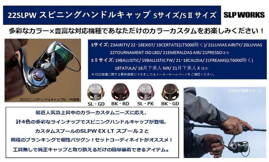 アルミマシンカットによる高級感と変化のあるスリット加工でカスタム感を手軽に演出するスピニング用ハンドルキャップより、新モデル【22SLPW スピニングハンドルキャップ S /S2】が登場!昨今のカラーカスタムニーズに応え、シルバー・ピンクやブラック・レッドなど多彩なラインナップをご用意することで、多くのダイワリールユーザーが納得できる商品となっております!