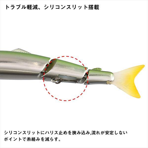 ジョイントが繰り出す艶めかしいアクション!様々なシュチュエーションの瀬を攻略出来るルアー。重心はよりヘッドの先端部に集中させ、頭下がりの姿勢で泳ぎ、二つのラインアイを使い分けることにより急瀬やチャラ瀬など多様な瀬に対応する。直進性を高め、急瀬の中でしっかりと引きたい時は前方のラインアイを、チャラ瀬などでより大きくボディを動かしたい時は後方のラインアイを使用。また、ハリス止め後方にシリコンスリットを配置したことで、ハリス止めの動きを抑え、ライントラブルを軽減させる。 サイズ:130mm 標準自重:19.7g タイプ:シンキング ※実物と色が違って見える場合があります。あらかじめご了承下さい。