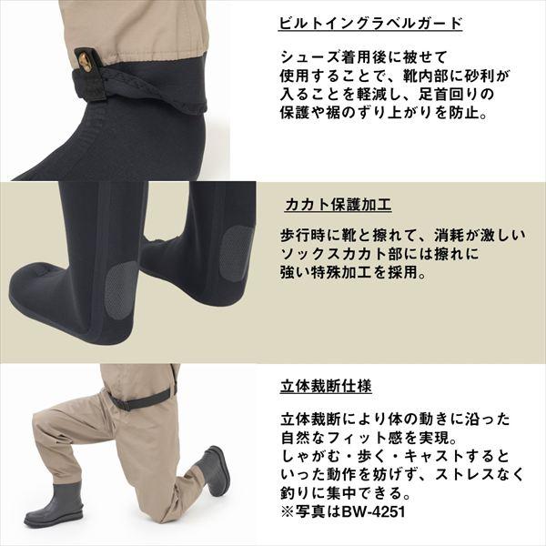 歩くたびに、自然は釣り人を試してくる。鋭い枝葉に擦られ、岩に打ち付けられ、汗をかきながらも一歩先のポイントを目指す。そんな「攻める釣り人」のために生まれたのが、ダイワのブレスウェーダー。引裂き強度、透湿性が大幅に進化し、長時間のランガンでも蒸れを抑え、快適な着用感をキープ。タフに歩き回る釣行でも、快適さと耐久性を両立。水辺を自由に駆け巡るために必要な機能を、細部にまで実装。一歩先のポイントに辿り着くための武器となる。 サイズ:S カラー:グレージュ 足サイズ(cm):27.0-28.0 ソールタイプ:ソックス ※実物と色が違って見える場合があります。あらかじめご了承下さい。