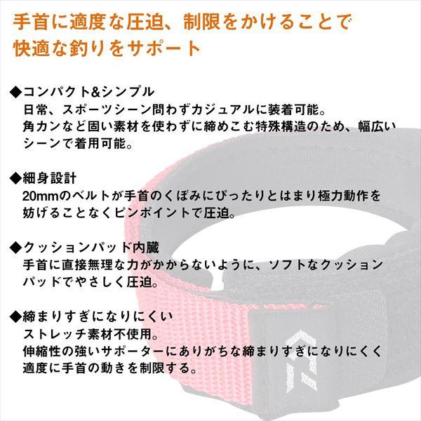 手首の使いすぎによるトラブルでお悩みの方へ。手首に適度な圧迫、制限をかけることで快適な釣りをサポート日常、スポーツシーン問わずカジュアルに装着可能。角カンなど固い素材を使わずに締めこむ特殊構造のため、幅広いシーンで着用可能。20mmのベルトが手首のくぼみにぴったりとはまり極力動作を妨げることなくピンポイントで圧迫。手首に直接無理な力がかからないように、ソフトなクッションパッドでやさしく圧迫。 サイズ:フリー(手首周囲約15-20cm) カラー:レッド 素材:ポリプロピレン、ナイロン、ポリウレタン、ポリエステル(パッド ポリエチレン) ※実物と色が違って見える場合があります。あらかじめご了承下さい。