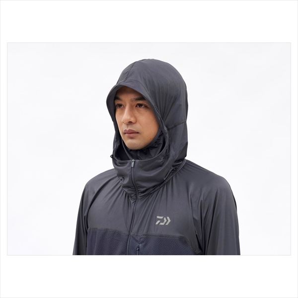 日陰をまとうICEDRYジャケット。太陽に晒されやすいフード、フェイス、腕部にはUVケア(UPF40)、吸水速乾、接触冷感のあるICEDRYに遮熱性能も併せ持つ素材を採用。Tシャツを着ると重なってしまう身頃部分には通気性の高いメッシュ素材で切り替えることで快適な着心地を提供。フードにフェイスカバーが付いており、必要時のみ使用することが可能。目元の際までしっかりカバーできるようなパターン設計。胸ファスナーポケット、フィンガーループ付き。フード先には風によるバタつきを防ぐスピンドルアジャスターを搭載。 サイズ:2XL カラー:ブラック ※実物と色が違って見える場合があります。あらかじめご了承下さい。
