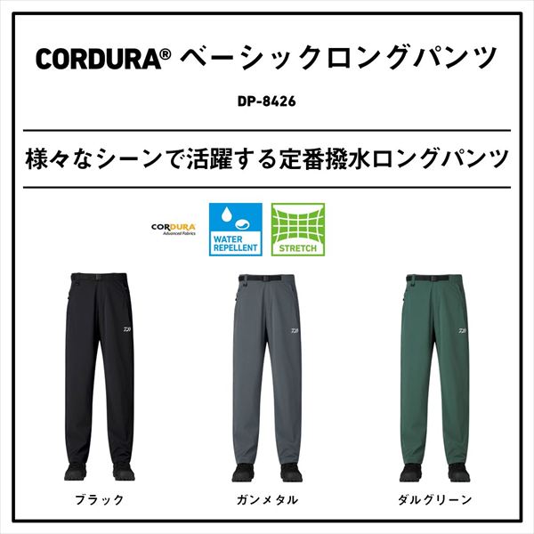 様々なシーンで活躍する定番撥水ロングパンツ。本体は摩耗に強いCORDURA素材を採用。撥水、ストレッチ機能付き。右後ろのファスナー付きポケットは仕切りがあり、携帯や小物の仕分けにも便利。仕切りの脇側ポケットは携帯電話等を入れ座った際に踏まないように設計。 サイズ:XL カラー:ブラック ※実物と色が違って見える場合があります。あらかじめご了承下さい。