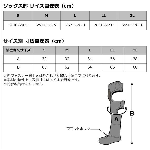 夏場のライトスタイルに最適!クロロプレンソックス一体型ゲーター。■ネオゲーターNG-300S・・・耐久性・保温性を追求した3.0mm厚クロロプレン採用!■本体・ソックス部は特殊パンチング(穴あき)加工を施したクロロプレン採用で排水性・通気性向上 ※足裏は耐久性重視のノーマルクロロプレン。■シューズ等の履き口の上に重ねて着用することで砂の流入を軽減。紐仕様のシューズには、フロントホックを紐にかけることで、ズリ上がりを軽減。■ひざ上内側はシャークスキンを採用し、ズリ下がりを軽減 ■フィット感が高く、着脱しやすい2段式面ファスナー仕様 ■擦れることが多いヒザ周りは、特殊生地を採用し耐久性向上 ソックス部サイズ目安:LL(26.0-27.0) ※実物と色が違って見える場合があります。あらかじめご了承下さい。