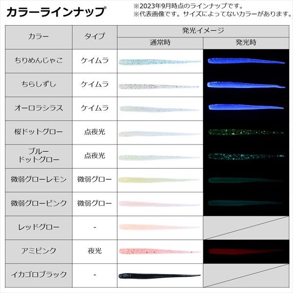 月下美人史上、最も柔らかい素材を採用。リアルなシラス形状と柔らかな波動がタフな状況で効果を発揮!水流やロッドアクションに敏感に反応し、生命感あふれるなまめかしいアクションを発生。極めて軟らかなボディ素材。■ウロコもリブも排除した無装飾ボディ。ほぼ無装飾ともいえるボディラインが生み出すナチュラルな弱波動が特徴。魚の活性が低く、強波動に食い渋る時のマストアイテム。■コアにイワシオイルを配合!ボディのコア素材には「イワシ油」を配合。イワシを主体とした小魚の成分をボディ中心部に高濃度に配合することで集魚成分の持続性が増し、高い集魚力を実現した。 サイズ:1.5インチ 素材:エラストマー 入数:10(ちりめんじゃこ、ちらしずし、オーロラシラス、桜ドットグロー、ブルードットグロー、微弱グローレモン、微弱グローピンク、レッドグロー、アミピンク、イカゴロブラックそれぞれ各1個) ※実物と色が違って見える場合があります。あらかじめご了承下さい。