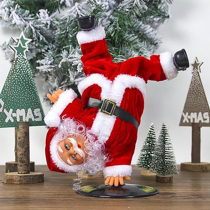 ■商品名サンタクロース 踊る人形 音楽付き クリスマス飾り 置き物 クリスマスサンタ 電動人形 かわいい サンタさん ブレイクダンス 逆立ち姿 卓上 北欧風 インテリア テーブルデコレーション パーティー 雰囲気作り 屋外 屋内 玄関 店舗用 贈り物 27cm