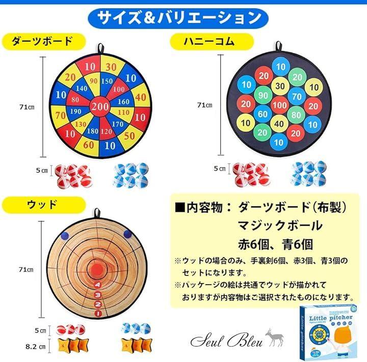 ・内容物: ダーツボード(布製)、マジックボール 赤6個、青6個