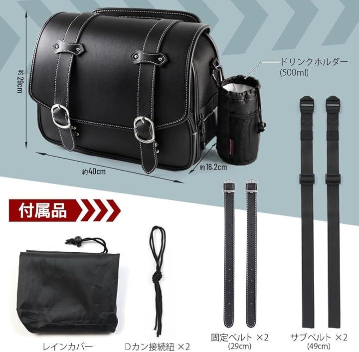 「セット内容」サイドバッグ本体x1、ドリンクホルダーx1(カラビナ付きで落下防止)、2種類の固定ベルト(27cm固定調整用ベルトx2、47cmアジャヤスター固定ベルトx2)、レインカバーx1、 ご注意:バッグサポートが別売りでございます。