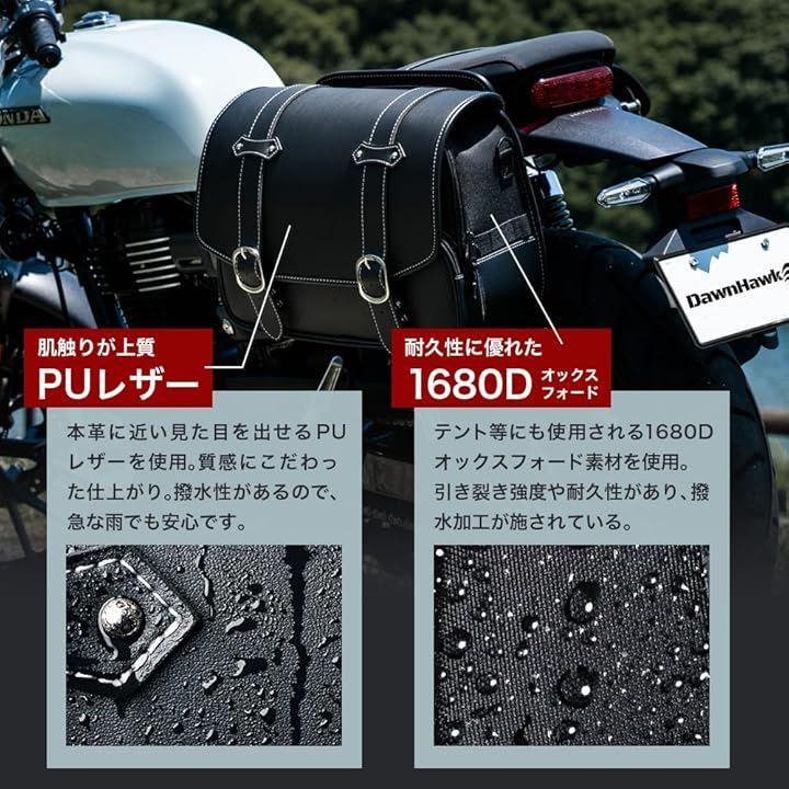 「撥水加工」当サイドバッグは1680Dを採用しており、全体的に撥水性に優れています。