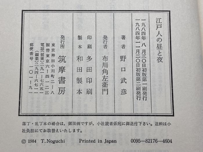 商品名:江戸人の昼と夜 筑摩書房 野口武彦