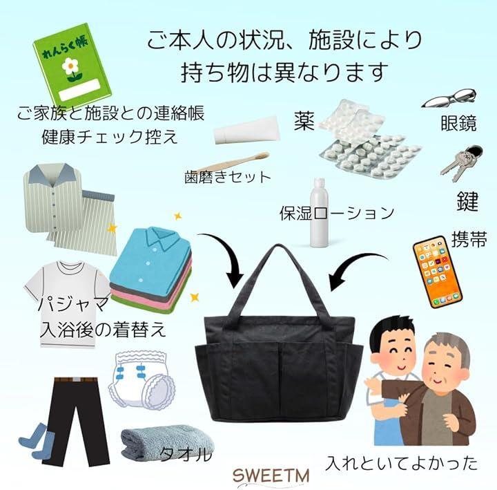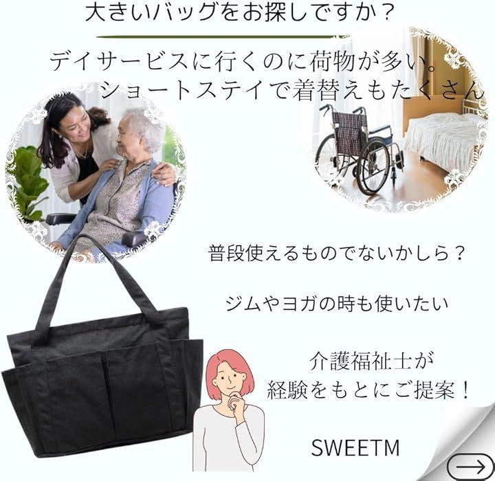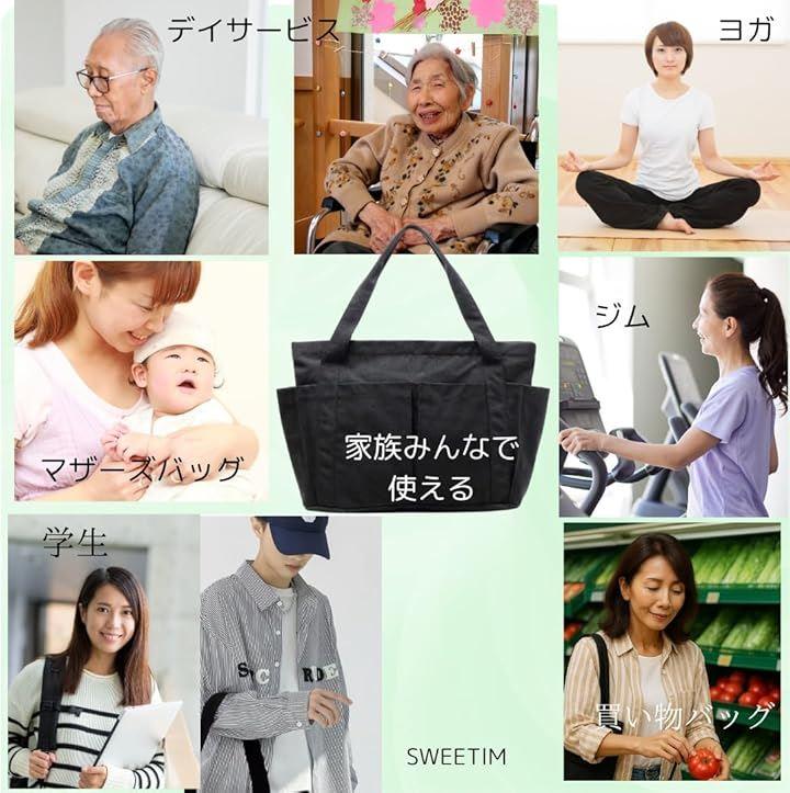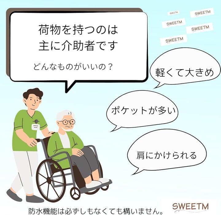 肩にかけられる,荷物整理をしやすいポケットが多い、大容量。