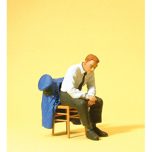 ジャケットを椅子に掛けて座っているDB(ドイツ連邦鉄道)職員の人形です。