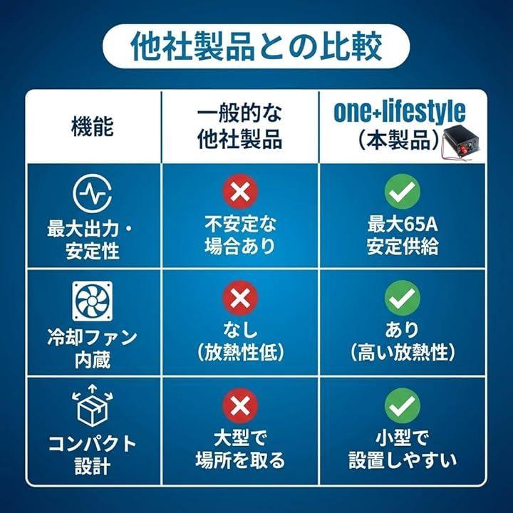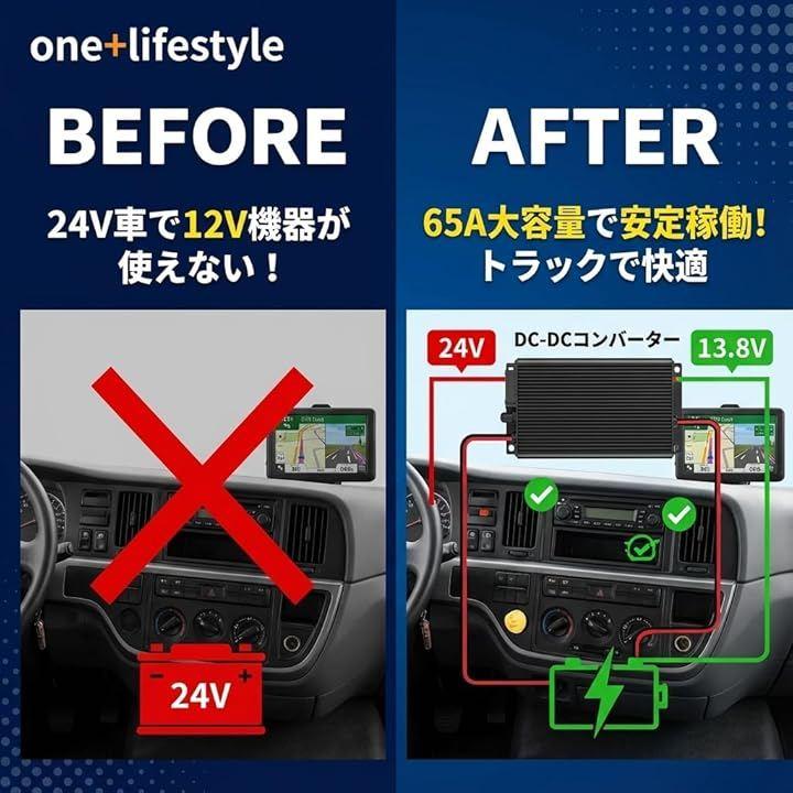 「電圧変換」DC24VからDC13.8Vへ最大65Aで安定供給でき、トラック無線や大型車・船舶の電源変換に幅広く対応します。