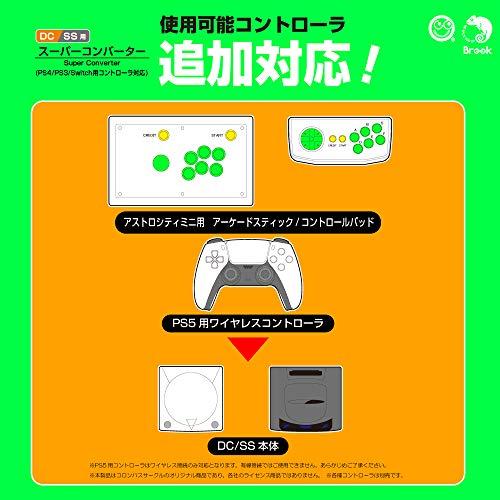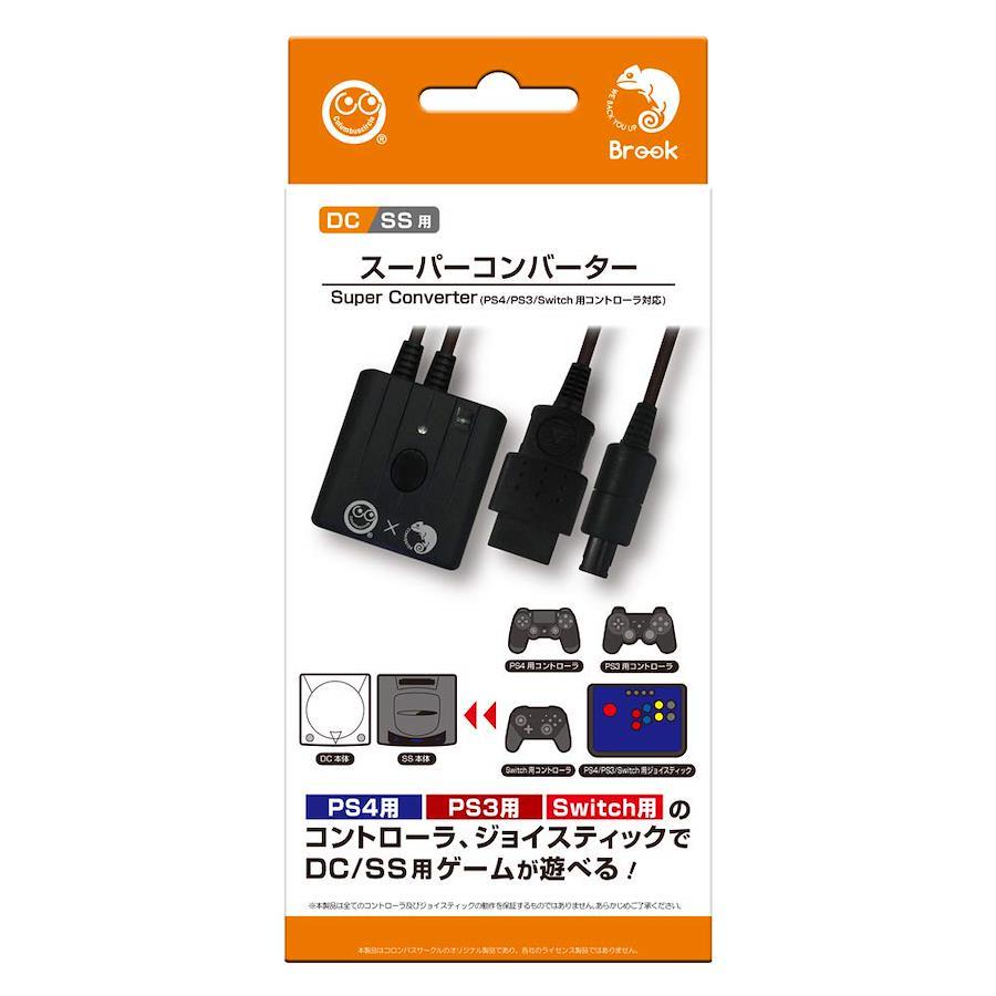 Introducing a converter that can be used for PS4/PS3/Switch controller/Joystick. A dramatic increase in operation, allowing you to play retro games comfortably.The Dreamcast unit and Saturn unit can be used with PS4/PS3/Switch controllers and joysticks. ]This product (DC/SS) Super Converter is a controller conversion adapter that can be used with a controller or joystick for PS4/PS3/Switch as well as Dreamcast and Saturn Body. It also supports wireless use of PS4/PS3/Switch controllers, so you can play games comfortably away from TV. In addition to the controller, you can also use the Joystick, so you can enjoy fighting games, action games, shooting games, and more. You can also customize the controller's button assignment settings and consecutive firing settings. You can set it up and play it for your own personal play. In addition, it has a convenient "game file storage function" that can be used for saving DC games. 200 blocks of memory inside this product. It is convenient to use. This "Super Converter" is recommended for those who have used "Dreamcast" and "Saturn" games. Enjoy a fresh feeling with the original masterpiece software.[Note 1]This product is not guaranteed to work with all PS4/PS3/Switch controller/Arcade Stick. When using a wireless controller, it is necessary to connect the USB cable first. For joysticks that support PS3 and PS4, please switch them to PS3 before using. Cannot be used for PS4.Note 2:This product is an original Brook Desigin product and is not licensed by Sega company. The names or trade names listed are trademarks or registered trademarks of their respective companies. The screen is in development. The specifications, shape, color, and packaging of this product may change without prior notice for improvements.Model Number: CC-SDSCV-BK This is a "controller converter" that can be used for PS4 / PS3 / Controller for Switch, and Arcade Stick. It is not only compatible with wired connections, but also wireless (wireless) connections In addition to the controller, you can also use the Arcade Stick, so you can enjoy fighting games, action games, shooting games, and more A huge variety of features unique to a super converter. You can freely set the "Continuous Shooting Settings" and "Button Assignments" so you can conveniently enjoy the game by customizing the controller with the easy-to-play button arrangement or using the continuous firing function in difficult situations Equipped with a convenient "game file storage function" that can be used for saving DC games. 200 blocks of memory inside this product This "Super Converter" is recommended for those who have used "Dreamcast" and "Saturn" games. You can enjoy the fresh feeling of the original masterpiece software