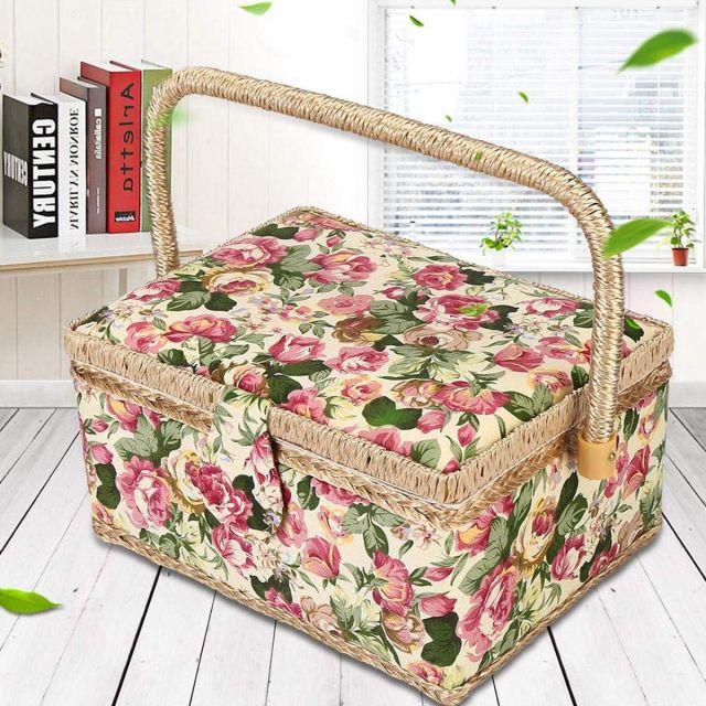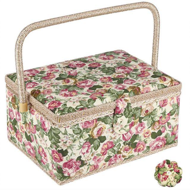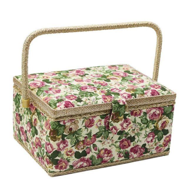 サイズ:30.5*23*16cm◆商品名:D&D裁縫箱ソーイングボックス大容量小物入れ花柄道具箱裁縫裁縫道具トレトロモダン収納二層収納縫製アクセサリー収納ボックスツールボックスピンクッション小物収納贈り物誕生日母の日30.5*23*16cm