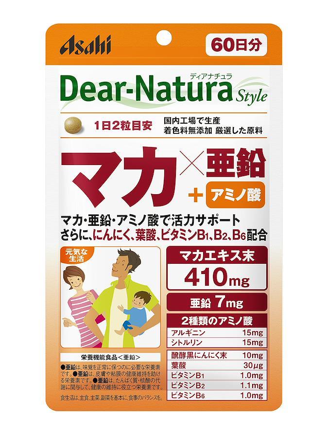 ●直射日光をさけ、湿気の少ない場所に保管してください。 マカ×亜鉛 内容量:120粒 (60日分) タイプ:錠剤 原材料・成分 :マカエキス末(マカエキス、デキストリン)、デキストリン、発酵黒にんにく末、グルコン酸亜鉛、ステアリン酸Ca、糊料(プルラン)、セラック、V.B6、V.B2、V.B1 ブラント名: ディアナチュラ ■重要なお知らせ