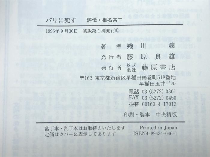 商品名:パリに死す: 評伝・椎名其二 藤原書店 蜷川 讓