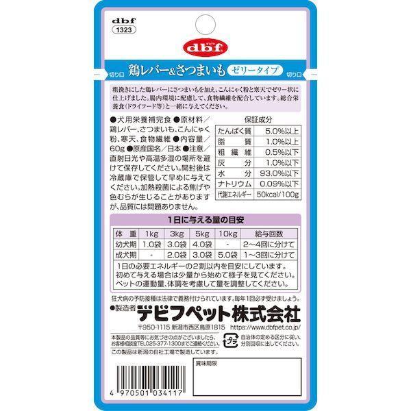 ●原材料:鶏レバー、さつまいも、こんにゃく粉、寒天、食物繊維