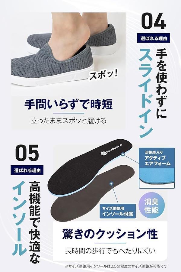 「手を使わずにスライドインスライドイン」手を使わず、立ったままスポッと履けるスライドインシューズ。