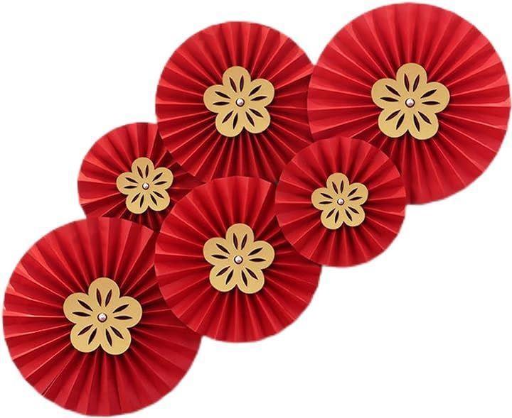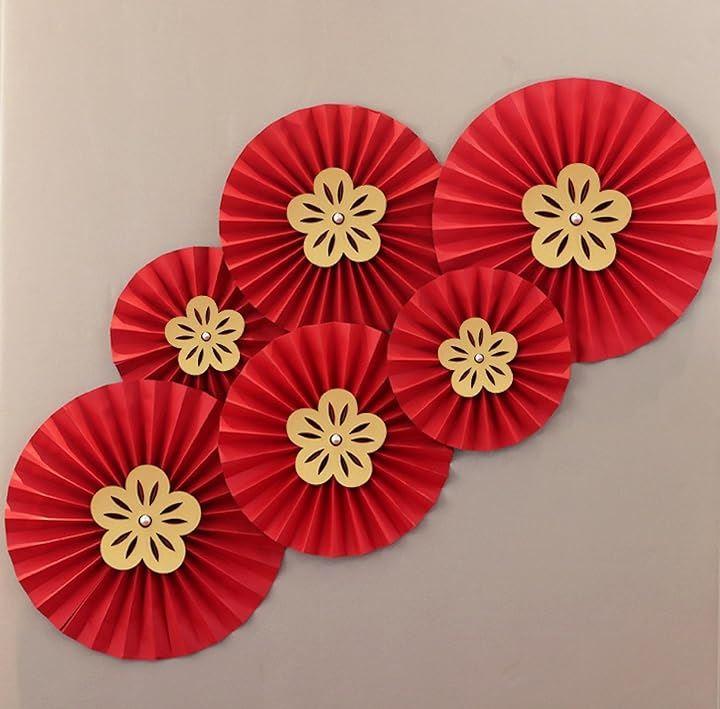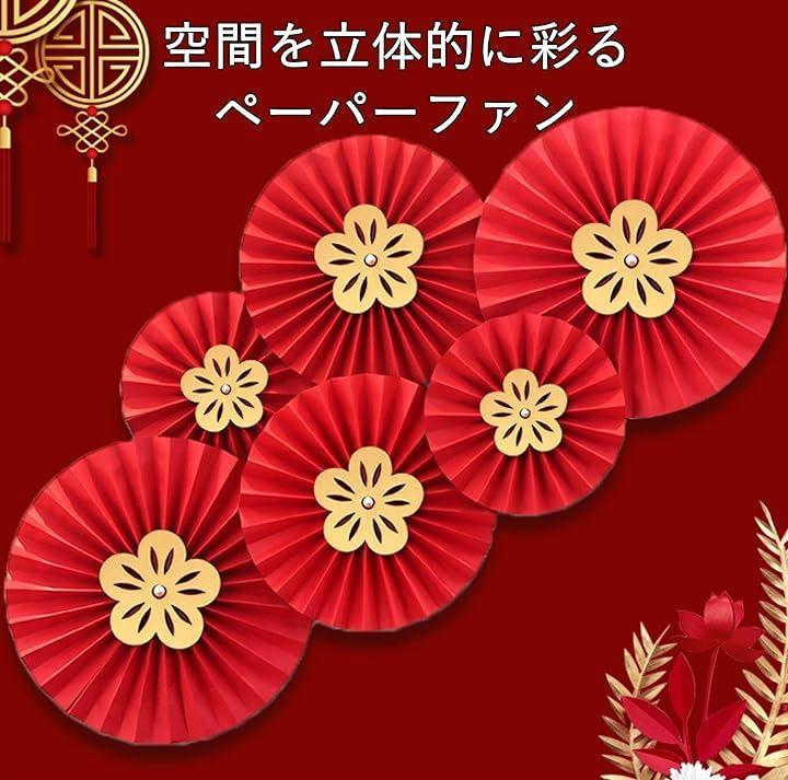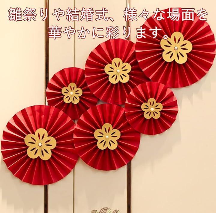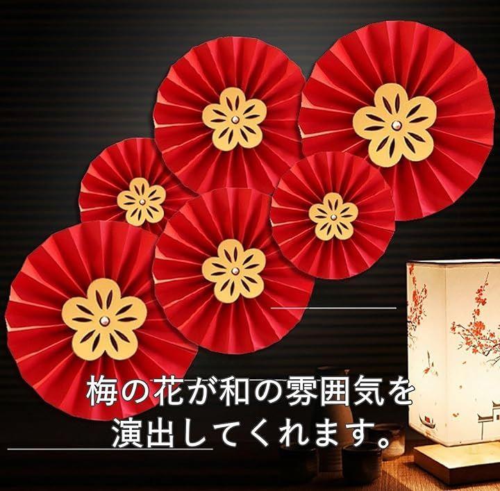 飾り付けに最適なペーパーファン、和風、梅の花デザインの6個セットです。