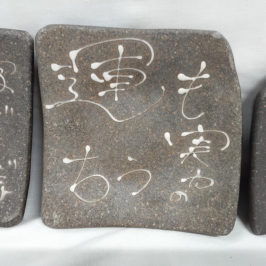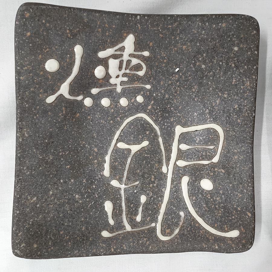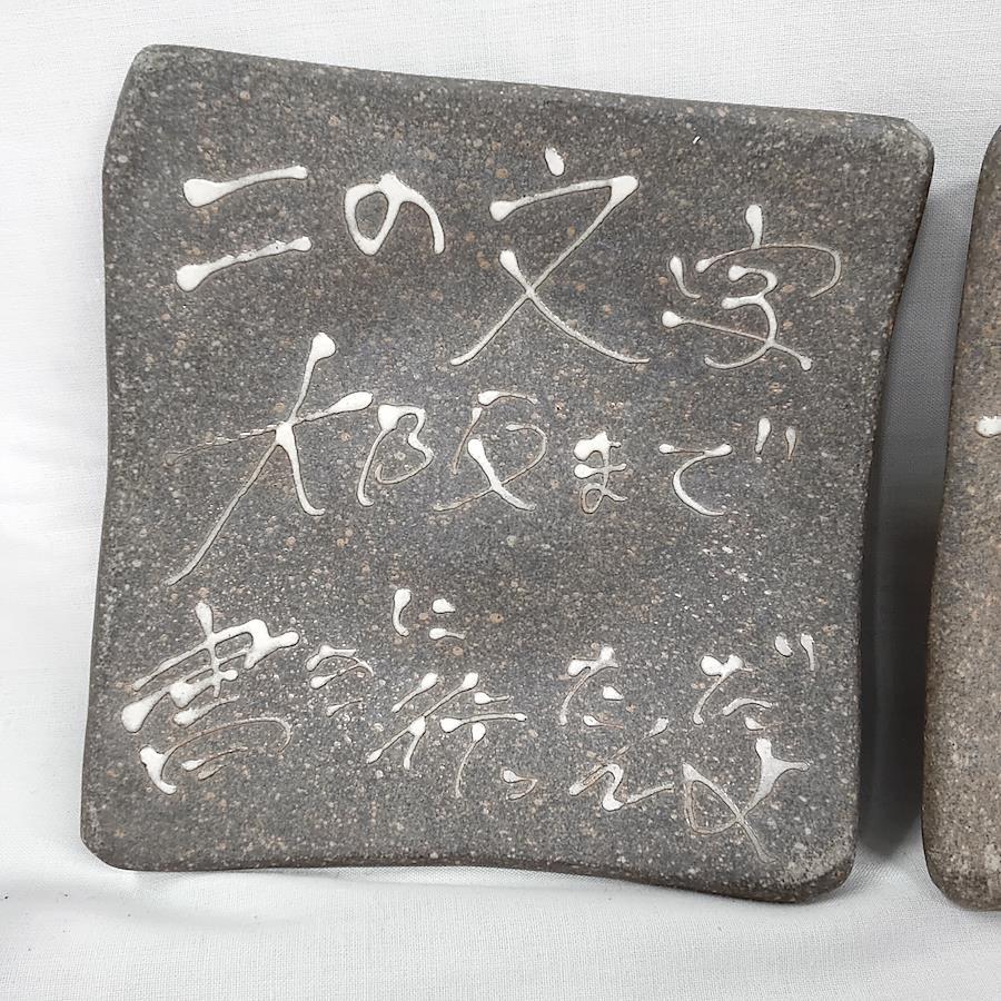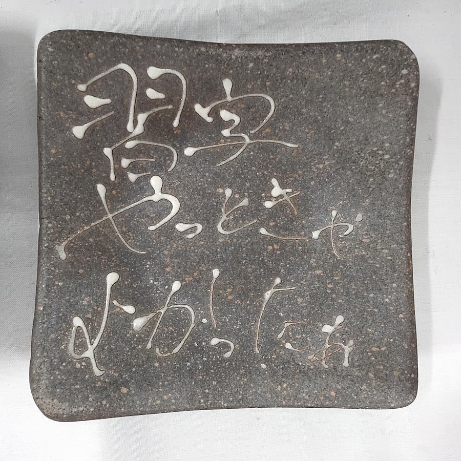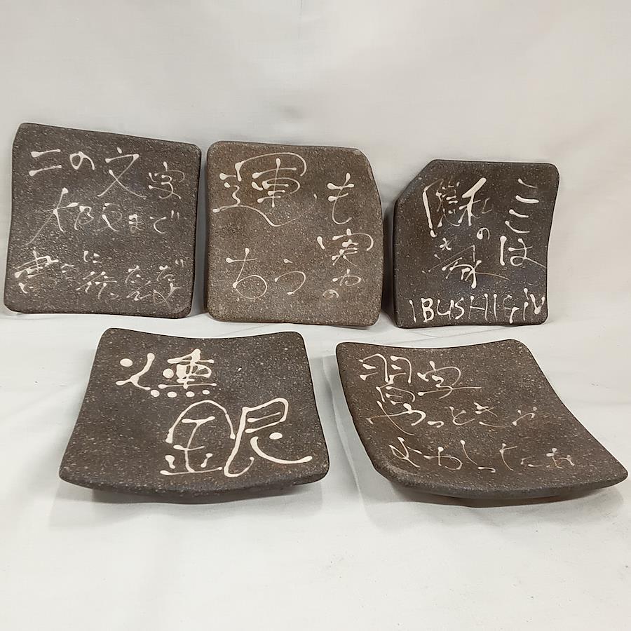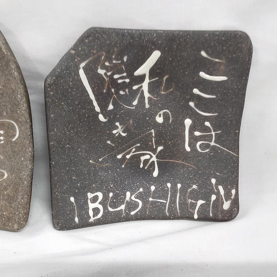飾り皿ここは私の隠れ家 IBUSHIGN、運も実力の内、この文字大阪まで書きに行ったんだよ、習字やっときゃよかったぁ、燻銀と書かれています。中古品・長期保管によりスレ等、経年劣化があります。(写真参照)
