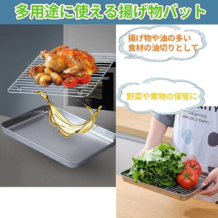 「多用途に使える揚げ物バット」調理時の油切りや水切り、切った食材の保管に便利なバット。