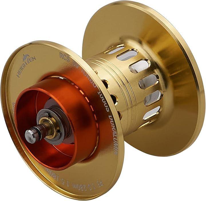 「寸法1」重量:9g (スプール本体) / 11.2g ( スプール本体 + セラミックス混合ベアリング内蔵1個 ) / 1.33g ( 外部のベアリング1個 )、材質:本体:ジュラルミン / ベアリング:混合セラミックスのベアリング。