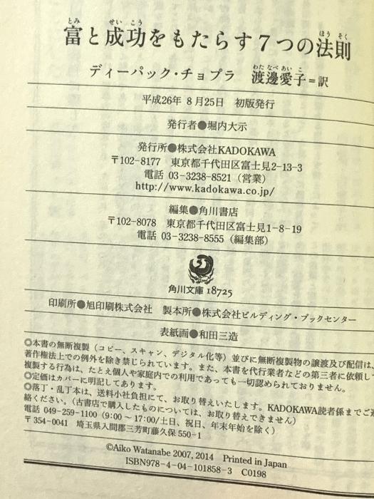 Deepak Chopra's Seven Laws of Wealth and Success (Kadokawa Bunko) KADOKAWA/Kadokawa Shoten