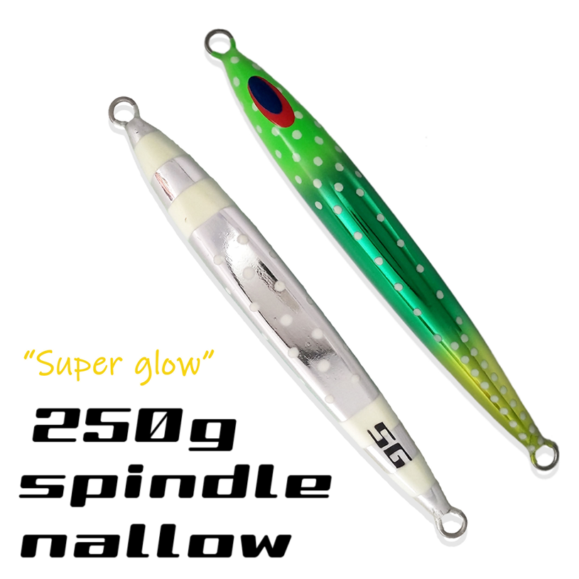 スピンドルの強みでもある、上げ下げ時のアピールを抑えたナチュラルアクションでの喰わせ。 スピンドルナローはこの強みに、抜け過ぎない程よい抜け感でよりスピード感のある、またはメリハリのある巻きのアクションを比較的容易に演出。 青物、根魚問わず、興味を持った魚に口を使わせます。 フロント重心がパラレル(平行姿勢)フォールを容易にし、フォールアクションの自走を抑制するので、太刀魚など捕食が下手で歯のある魚の、ミスバイトによるリーダー切れも減らしてくれます。巻きの釣りはスピード感もあり、上げ下げアクションを自在に組み合わせる等、得られる操作感は、使う楽しさを感じるジグの一つです。