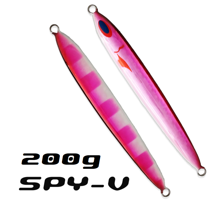 10m以上の誘い上げを続けた後にフォールで喰わせるというパターンに合わせるためチューニングしたSPY。テストを続けるにしたがい予想外なことに、スローピッチジャークやロングフォールジャークで、青物だけでなく底物にも効果がある事が判明。商品化に至りました。なかでも浅場で使う250gや、深場での600g前後などはビッグサイズ、モンスタークラスへのアプローチに心強いアイテムです。 SPYとSPY-FIVEは似て非なるものであり、その性格の違いはスローピッチジャークへの理解が深い方ほど、感じていただけると思います。でももちろん、「誰でも楽に釣れる」というコンセプトだけはSPY-FIVEもかわりません。