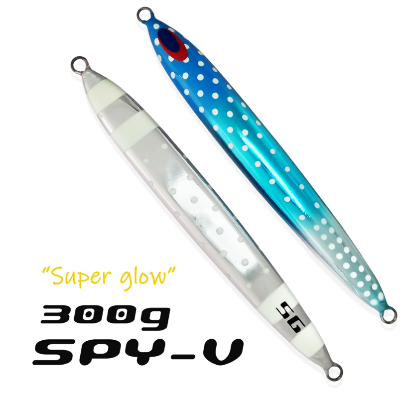 誰にでも楽に釣れる がコンセプト10m以上の誘い上げを続けた後にフォールで喰わせるというパターンに合わせるためチューニングしたSPY。テストを続けるにしたがい予想外なことに、スローピッチジャークやロングフォールジャークで、青物だけでなく底物にも効果がある事が判明。商品化に至りました。なかでも浅場で使う250gや、深場での600g前後などはビッグサイズ、モンスタークラスへのアプローチに心強いアイテムです。 SPYとSPY-FIVEは似て非なるものであり、その性格の違いはスローピッチジャークへの理解が深い方ほど、感じていただけると思います。でももちろん、「誰でも楽に釣れる」というコンセプトだけはSPY-FIVEもかわりません。