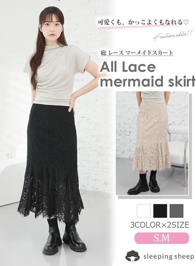 女性らしく、フェミニンな印象の総レースのスカートを、スタイルアップが叶うマーメイドシルエットに。