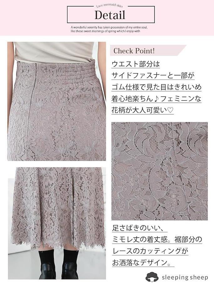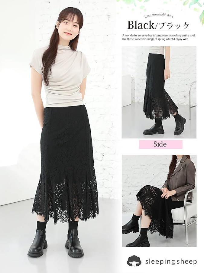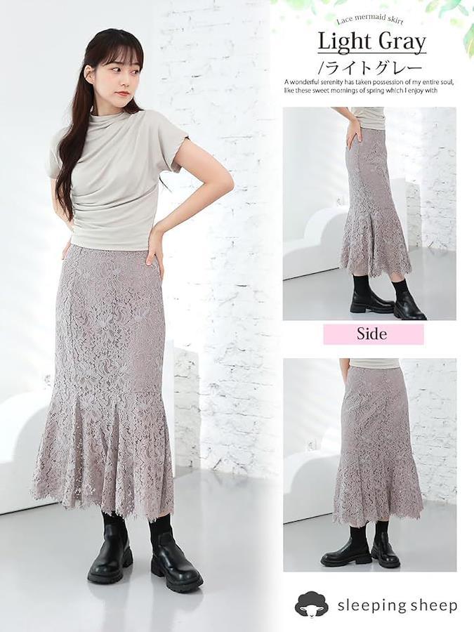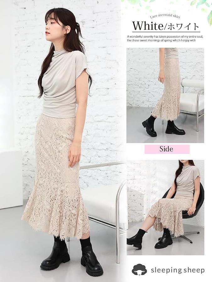 女性らしく、フェミニンな印象の総レースのスカートを、スタイルアップが叶うマーメイドシルエットに。