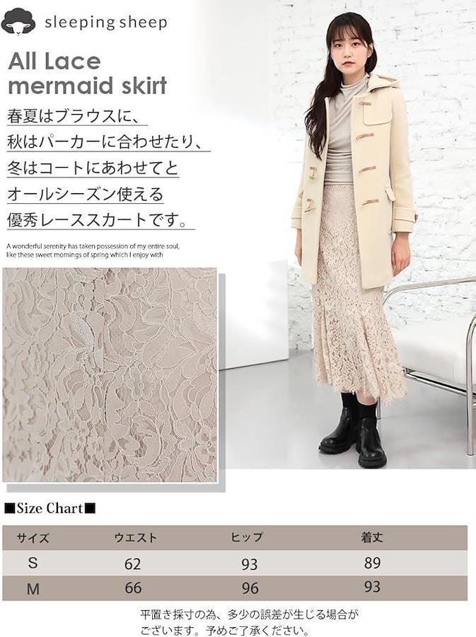 春夏はブラウスやキャミソールに、秋はパーカーに合わせたり、冬はコートに合わせてとオールシーズン使える優秀レーススカートです。