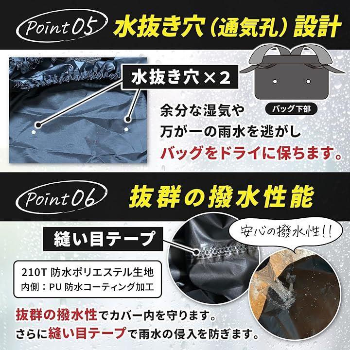 バッグ全体を覆う設計で、雨水の侵入をしっかり防止。