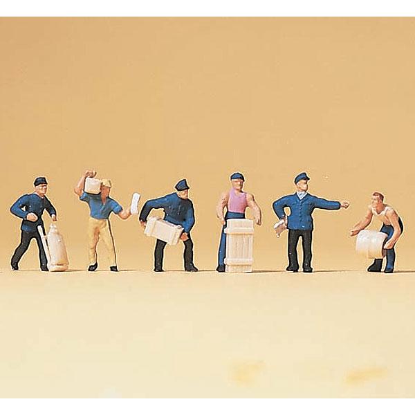 Delivery men with loads荷物を運ぶの宅配員の人形、6体セットです。重そうな木箱や樽を運んでいたり、指示を出していたりいています。