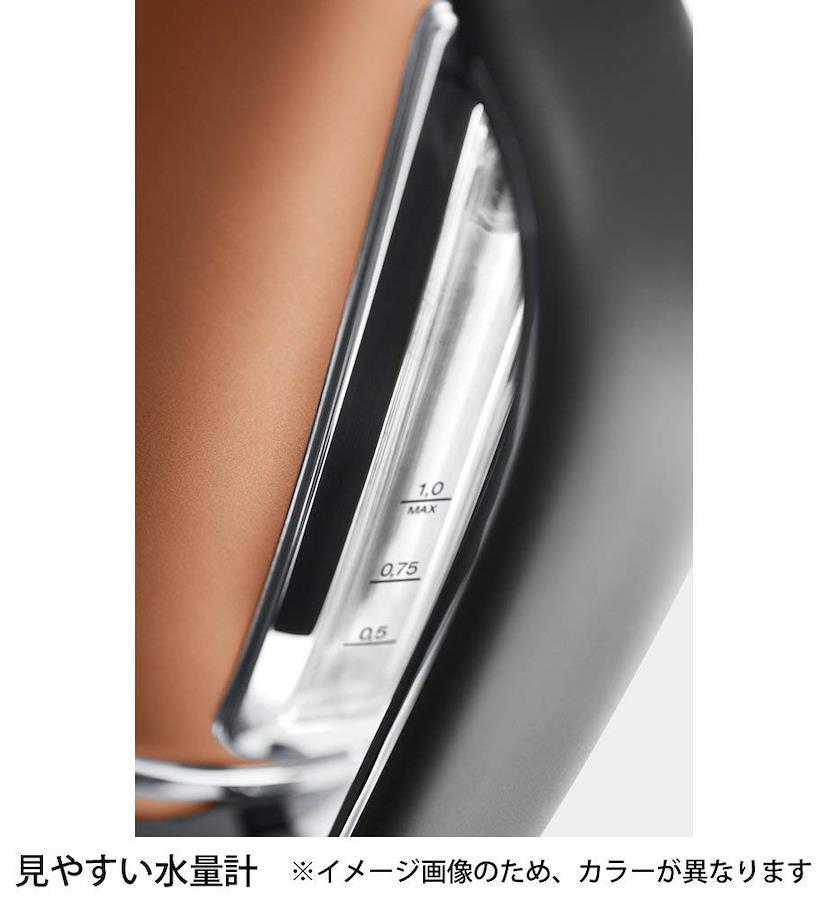 「特徴的」「独特」という意味を持つディスティンタ・コレクション卓越したモールディング技術が実現する「スクエア(四角)」と「サークル(丸)」を合わせた『スクエアクル』デザイン上品なマットメタリックカラーでキッチンを華やかに彩る【コンパクトながら容量1.0Lと家族にちょうど良いサイズ】最小200ml~最大1L容量で、欲しいときに欲しい分だけ沸かせて経済的【ふたの間口が