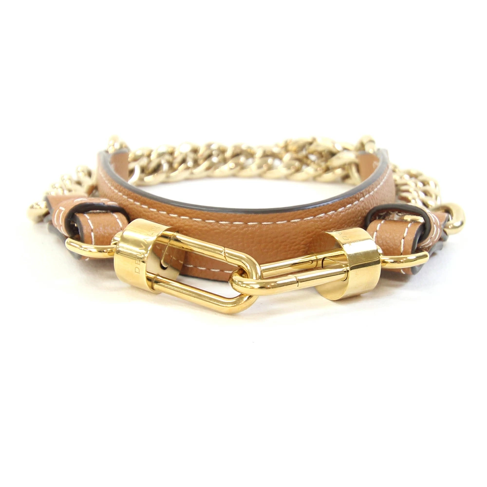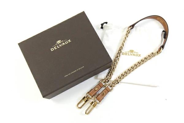 Delvaux Short Chain Shoulder Strap AN0006AAU0ADNDO Brown Leather with Gold Hardware, Metallic, Pre-owned, Women's, Replacement Strap