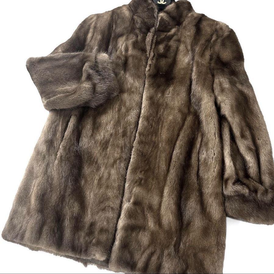 着丈80㎝ デミバフミンク ファーコート リアルファー 本毛皮 貂 アウター XLサイズ 毛並み◎