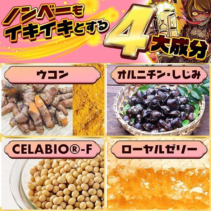 *「飲み」生活にお馴染みのオルニチン、ウコン、しじみは当然のデフォルト配合。米ぬかと大豆エキスを納豆菌で発行させたセラビオ-Fも採用、隙の無い酒豪魔族に近づけるよう徹底的に努力しております。