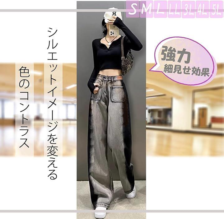 「体型カバー」ゆったり目のストレートパンツは、気になるラインを拾わず、体型をカバーし、コーデがスタイリッシュにきまる。