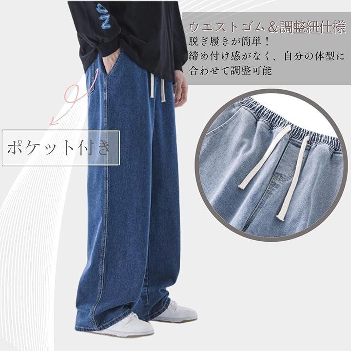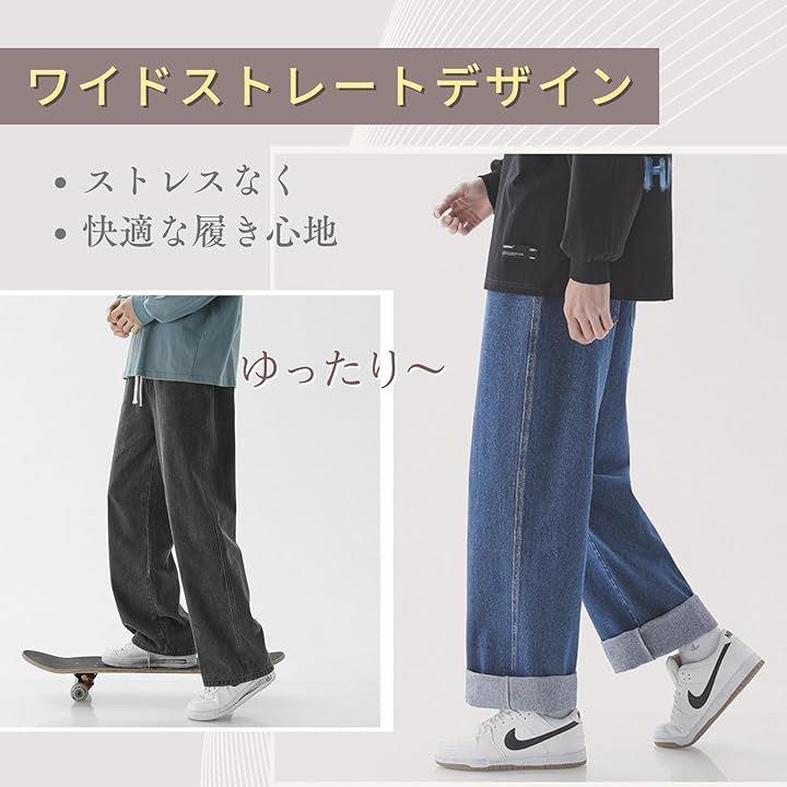 「ゆったりデザイン」ヒップから太ももまでトンと落ちるワイドストレートデザインで、ストレスなく、快適な履き心地。