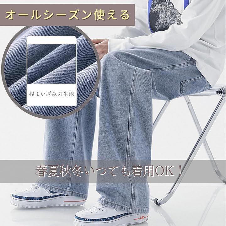 「ゆったりデザイン」ヒップから太ももまでトンと落ちるワイドストレートデザインで、ストレスなく、快適な履き心地。