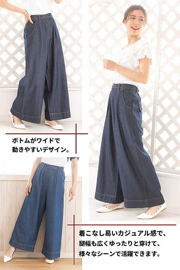 ・大人の女性らしい雰囲気がある上品でカジュアルな着回し高いワイドパンツで、ごわつかず薄すぎない程よいデニム感です。