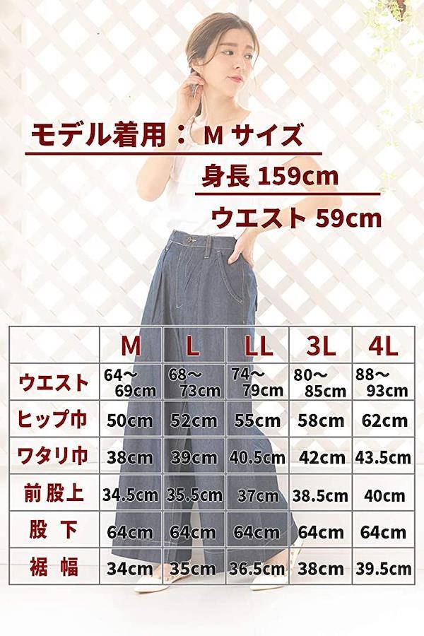 [3Lサイズ]ウエスト:80~85cm、ヒップ巾:58cm、ワタリ巾:42cm、前股上:38.5cm、股下:64cm、裾巾:38cm