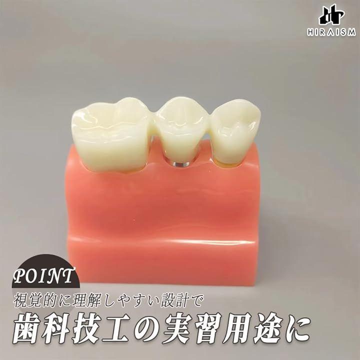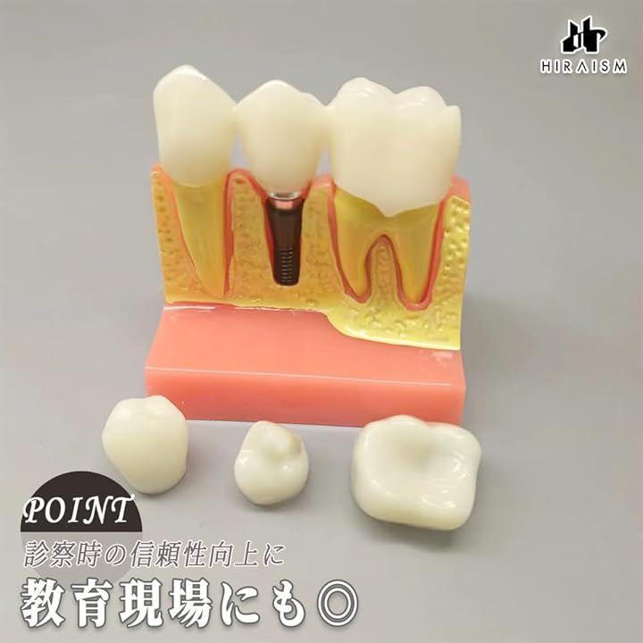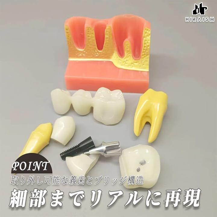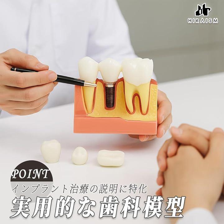 「インプラント治療の説明に特化した歯科用モデル」患者へのインプラント構造の説明や、義歯の取り外し手順、ブリッジの仕組みを可視化するための実用的な歯科模型。