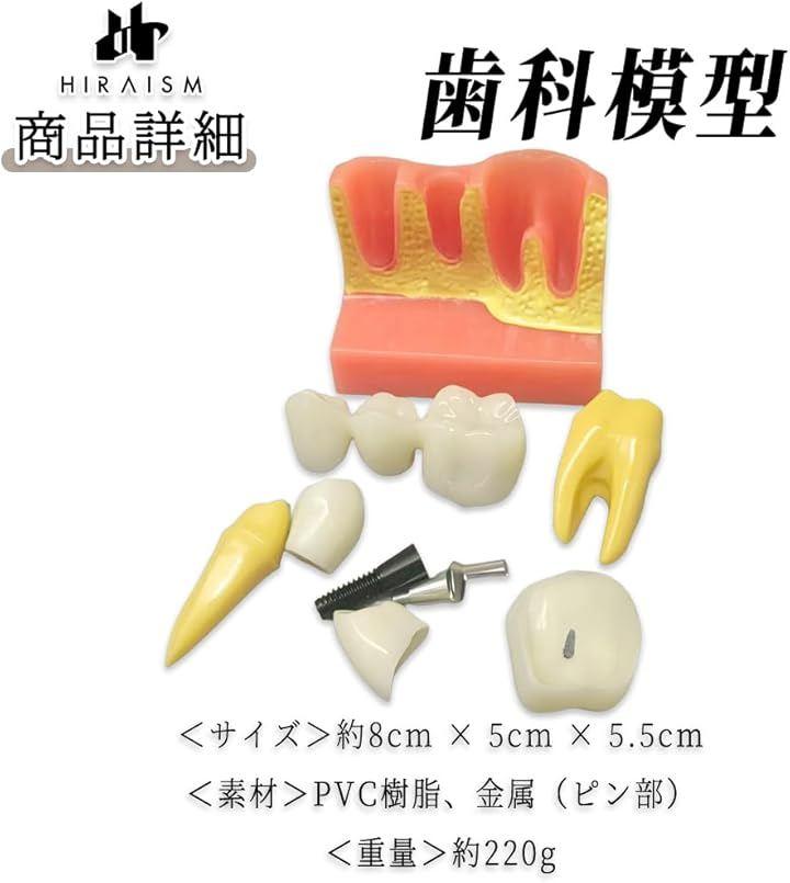 「商品仕様」インプラント説明用歯科模型 <サイズ>約8cm x 5cm x 5.5cm <素材>PVC樹脂、金属(ピン部) <カラー>歯部:アイボリー/ピン部:ブラック <重量>約220g *工場生産時期により、カラーが写真と若干異なる場合がございます