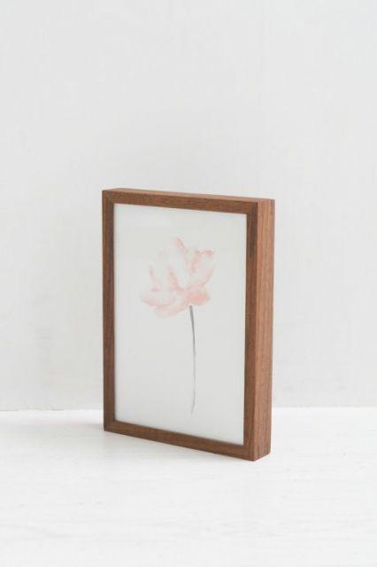 この額縁は写真や絵をより美しいものにするために、シンプルにデザインされています。しかし額縁として一番重要なこと、つまり、ガラスに写真や絵を確実に密着させることに、徹底的にこだわって設計されています。