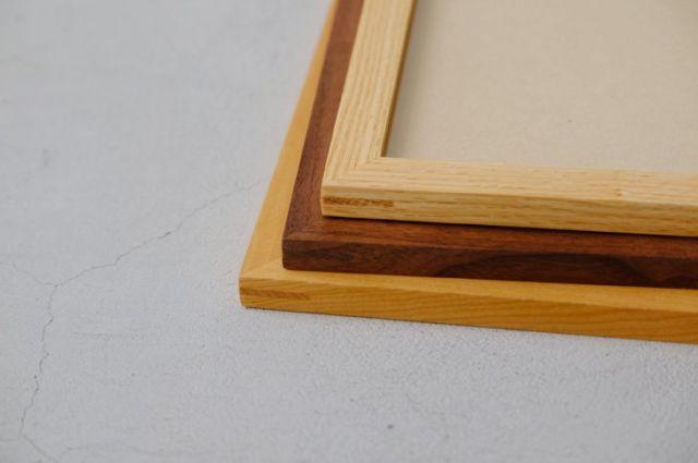 HAFENが別注した広島の家具メーカー、DENTO(デント)製作の国産フレーム。DENTOの丁寧な作りで、北欧・ヨーロッパ産のポスターフレームのようなシンプルさ、それに軽量さも含めて、無垢材で製作いただきました。オーク、チェリー、ウォルナットの3色展開。吊り下げ紐付属。