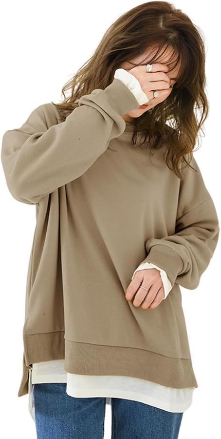 「特徴その1」Uネックと重ね着風のデザインが、女性らしさを引き立て、おしゃれな印象を与え、どんなボトムスとも相性抜群です。
